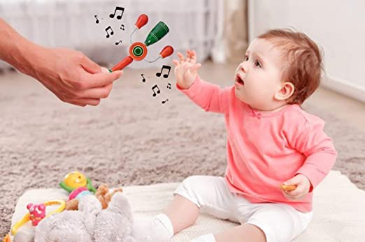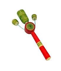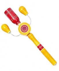 Rattle Damaru: The Damaru has 2 beeds across the Drum.Shaking the Toy will make the beeds clash with the drum and this simulates a damaru kind of sound.This is a colorful toy and Its easy for kids to hold and simulate the sound using this toy. Rattle Cage:This is a single color rattle with a cat shape head.The rattle has cage and a Gingle inside it. Kids get to hear the Gingle sounds when they shake it.Kids will love this. Rattle Egg:This is a egg shaped colorful rattle with a handle.The rattle has some beads inside the egg. Kids love to hear the beads sounds inside the rattle when thy shake it. Rattle Man 6 with whistle: This Rattle Man has 6 plates on his arm and has a whistle a the bottom. This is a multi color and multi sound producing toy. Kids will be pleased as soon as they hold this toy. Rattle Dumble is a dumble shaped rattle with 3 rings around it