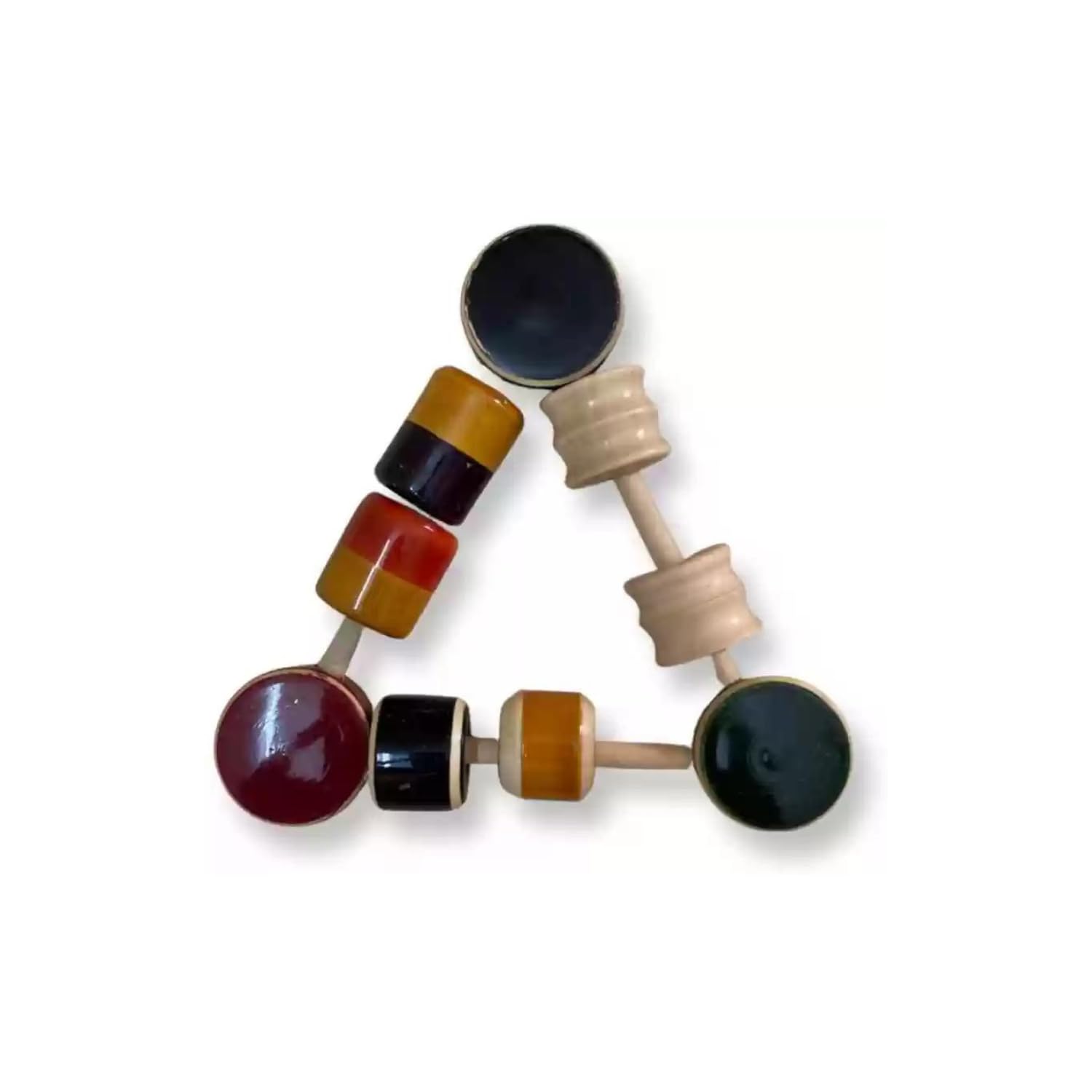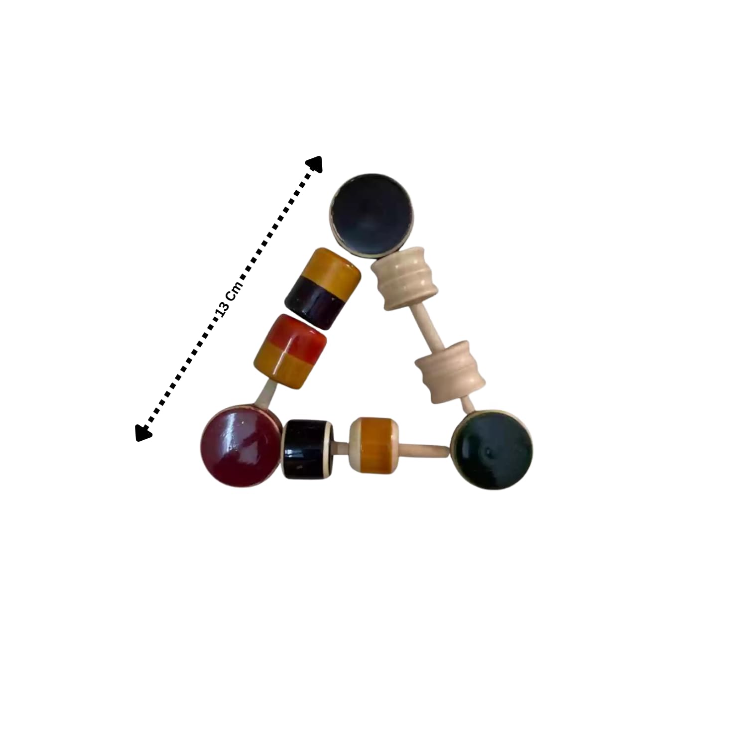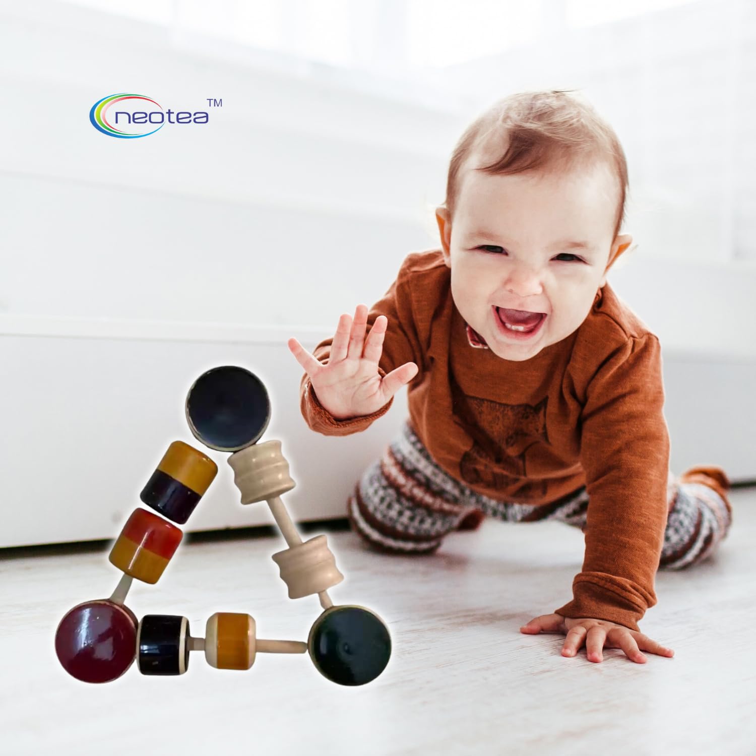 Introduce your little one to the joy of music with the Neotea Wooden Handcrafted Triangle Rattle Set. This set of musical instruments is specially designed for babies providing them with safe and non-toxic toys to explore their auditory senses. Crafted with care each rattle in this set is handcrafted from high-quality wood and finished with non-toxic materials ensuring the safety of your precious little one. The triangle shape of the rattles is easy for tiny hands to grasp making it the perfect choice for babies who are just beginning to explore their world. These rattles produce gentle sounds when shaken captivating your baby's attention and stimulating their auditory development. Whether your little one is at home or on the go these lightweight and portable rattles are sure to keep them entertained and engaged. Ideal for newborns and infants this rattle set makes a thoughtful gift for baby showers birthdays or any other special occasion. Spark your baby's curiosity and encourage their early musical exploration with the Neotea Wooden Handcrafted Triangle Rattle Set. Order now and let the music begin.
