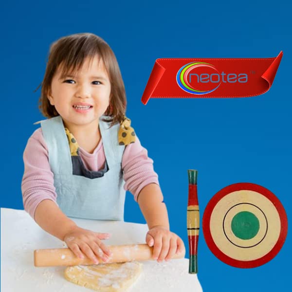 Neotea Wooden Handmade Wooden Kids chapati Maker Chakla Belan Pack of 1 (Color May Vary)