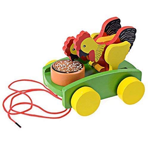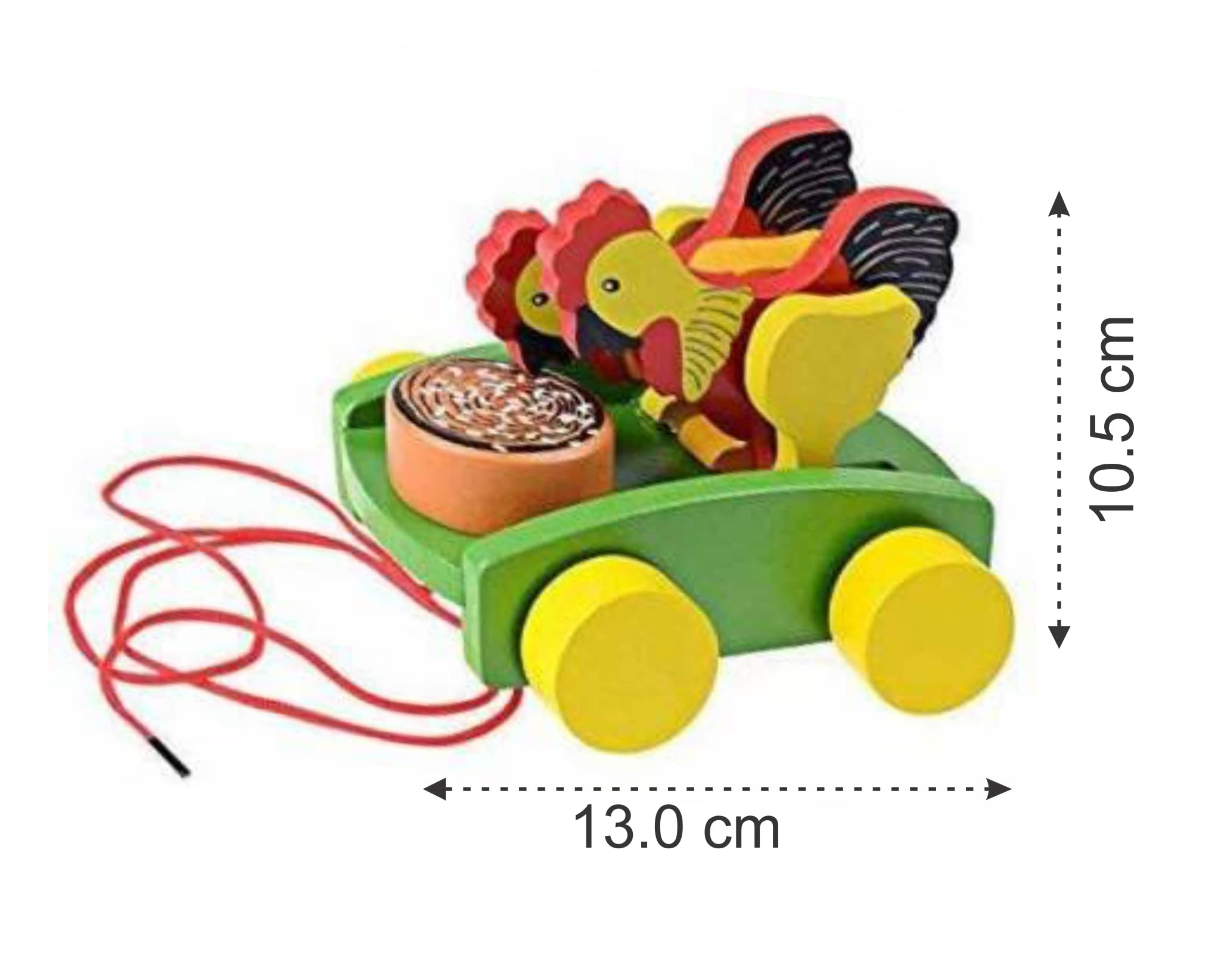 Neotea Wooden Musical Pull Along Toy Cute Chicken Drumming Pull Along Car with Attached String Pack of 1 | for 12 Months & Above Kids Toddlers Infant & Preschool Toys | Encourage Walking -Multicolor