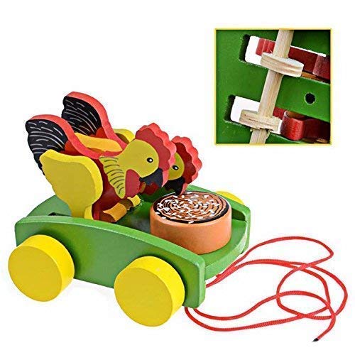 100% HANDMADE WOODEN TOY: wooden pull-along toys for 1-year-old kids and toddlers Handmade by recognized Artisans from Channapatna Karnataka Beautiful wooden pull-along toy which creates sound while dragging with string with a special mechanism. No batter