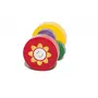 Wooden sunflower rattle toy - Contains 3 rounded bars & 3 colorful rings that move collide and make gentle sounds.