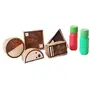 Is it a moon? Is it a mountain? Or a bowl of warm Soup? It could be anything your little one wants it to be. The shape Shifter stamp set Lets your child experiment with simple geometric shapes and discover innumerable combinations to form new ideas. Bring out the inner Picasso in your child with this stamp set. Playing with Abstract shapes and figures boosts imagination and allows for more lateral out of the box thinking. Create unique shapes and patterns on paper or fabric. Made from sheesham wood Shape Shifter stamps are perfectly-sized for your tiny tot's hands to hold. Comes with child safe non-toxic paints in two shades and a sponge to erase. Bring home a set today. Ages: 3 years plus.